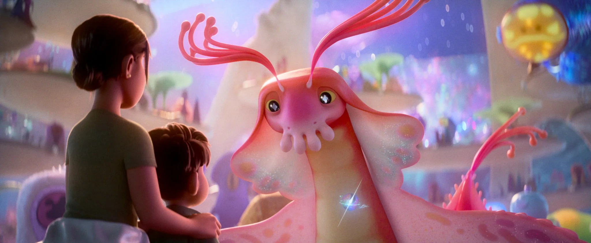 Sets supervisor David Luoh says he’s excited to share with audiences the epic breadth of the filmmakers take on outer space. “I have a fondness for when we see the Communiverse as a whole, like when Elio first encounters that world,” he says. “You can see the outer shell where the alien species grow their crops. Then we have four orbiting, twisting discs— each one hosting a different biome: aquatic, lush forest, icy tundra, and hot with lava. Nestled inside those discs, there's an inner paraboloid with skylines of central Communiverse infrastructure and a radiant core of light and energy, all with intricate, dynamic details sprinkled throughout.”